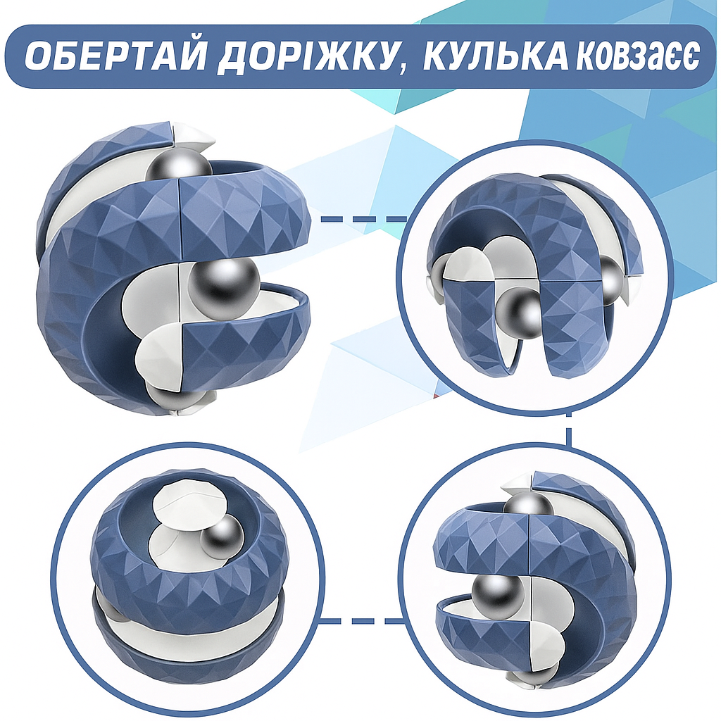 Ця унікальна іграшка поєднує в собі головоломку, антистрес та тренажер для мозку. Вона підходить для дітей і дорослих, допомагає зняти напруження, розвиває концентрацію та сприяє активній роботі мозку.